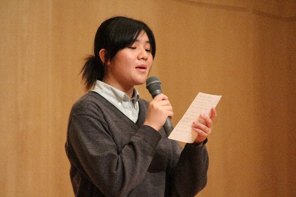 文芸部は短歌の個人発表や群読を、音楽部は合唱「fight」、「虹の輪の花」を、