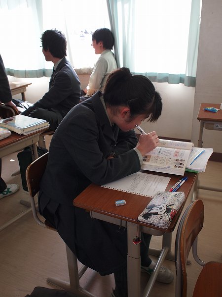 県立入試目前ということで、3年生は休み時間も机に向かい受験に向けて学習を進めています。黙々と学習を進める生徒、教え合う生徒と様々ですが、限られた貴重な時間を大切にしているようでした。努力した分だけ、必ず自分のチカラに変わります。最後まで諦めずに頑張って欲しいと思います。頑張れ3年生!!