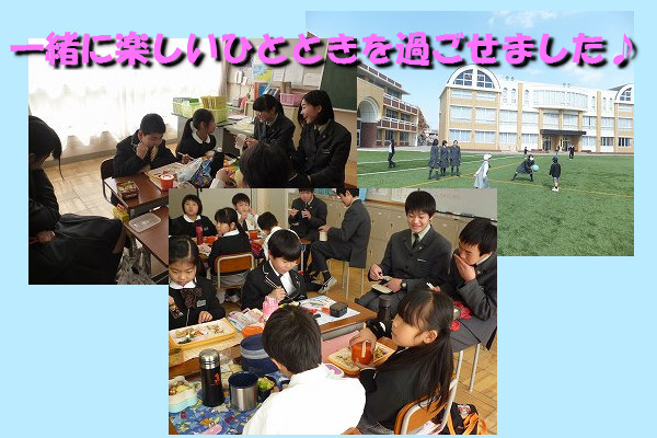 小学生に優しく言葉をかけ、笑顔で会話していて、中学生の今までとは違う一面を見ることができました。また、昼休みも小学生と楽しく遊び、交流を深めることができました。