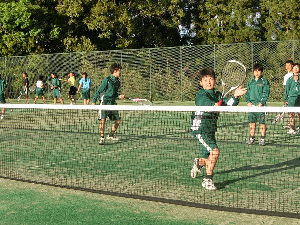 今日は男女テニス部の練習の様子を紹介します。徐々に部活動にも慣れてきた1年生は、先生や先輩方から丁寧に教えてもらい、基礎・基本を習得すべく練習に励んでいました。また、2・3年生は6月に行われる水戸市総合体育大会に向けて、最高の結果が残せるよう、一生懸命練習をしていまいした。3年生はいよいよ最後の大会となります。悔いが残らないよう1日1日の練習を大切にして欲しいと思います。