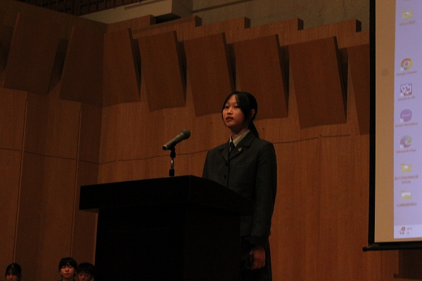スピーチコンテストでは、校内のコンテストで選ばれた生徒が英語でスピーチを披露しました。
