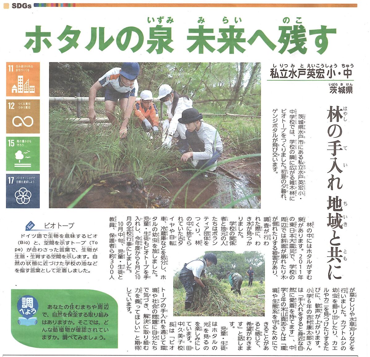 この度、私たちの活動が読売新聞社の「読売SDGs新聞」に取り上げられました。全員総出で一生懸命に草刈りなどを行った様子が紹介されています。