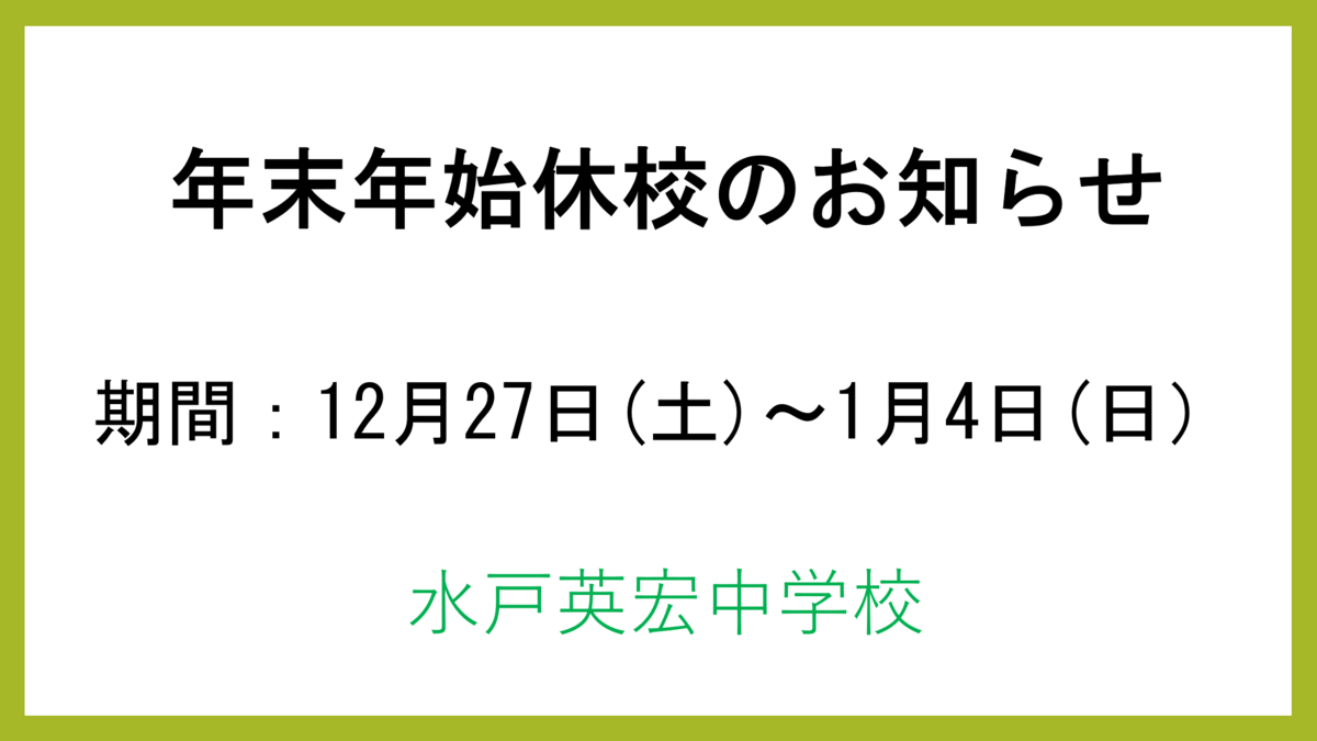 年末年始休校のお知らせ