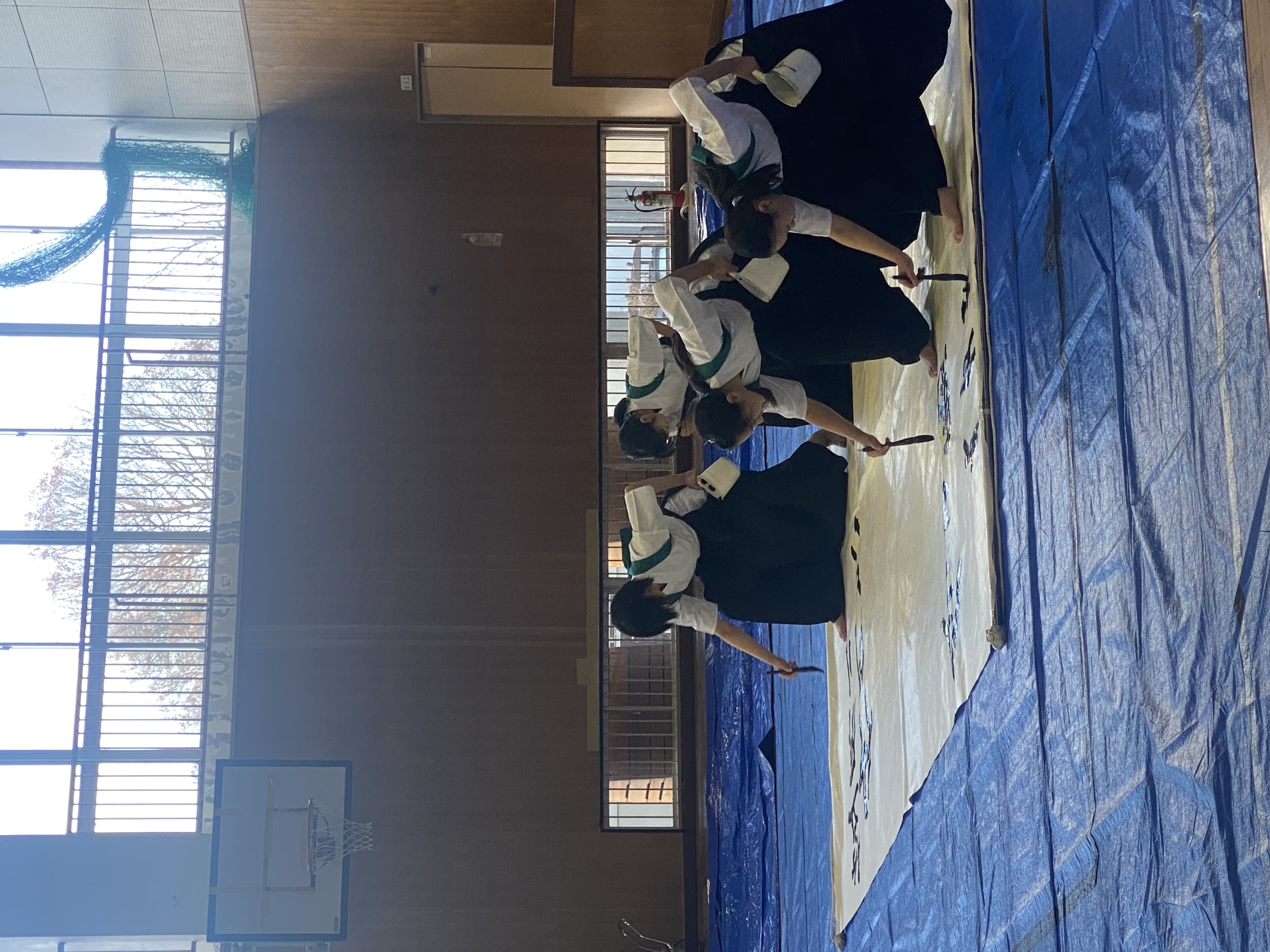 水戸市立笠原小学校の「第5学年親子学習会」にお招きいただき、本校書道部が水戸葵陵高等学校書道部の皆さんと合同で書道パフォーマンスを披露しました。一画一画に集中し、小学生や保護者の皆様の心に届くよう精一杯表現しました。