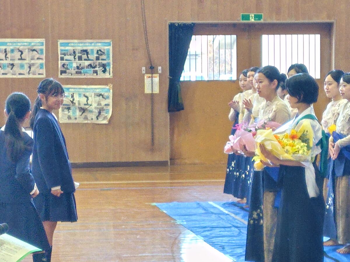 終演後、小学生の代表から心温まる感謝の言葉とともに、綺麗な花束を贈呈していただきました。生徒たちにとって忘れられない、温かな交流のひとときとなりました。
