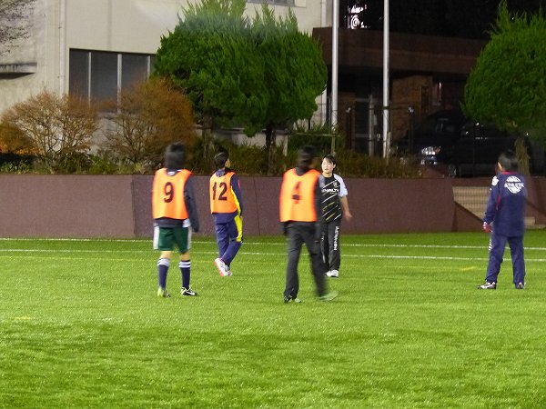 小雨が降るあいにくの天気でしたが、5対5のゲーム形式で練習を行いました。高校生と試合をすることが、技術面を学ぶほかに、行動面やチーム内のコミュニケーションなどを学ぶことができ、生徒にとって有意義な練習会となりました。