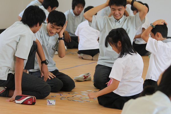 夏休みの期間を利用して、本校3年生が英宏小の児童の皆さんと一緒にカルタ大会を行いました。どの児童・生徒も笑顔いっぱいで楽しんでいる様子でした。3年生にとっては受験勉強の息抜きがてら、小学生をリードして一緒に活動を楽しめたことは、良い経験になったようです。EIKOファミリーの仲間として、これからも交流の場を充実させていきたいと思います。