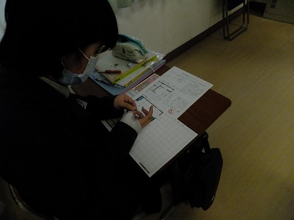1学年技術家庭科の授業で住まいの平面計画を行っています。自分が将来住みたい家をイメージし、将来の家族構成や部屋の間取りをシールを使ってデザインしています。最初は将来のイメージが湧かず、手が止まってしまう生徒もいましたが、段々と自分のイメージを表現出来る生徒が多くなり、素晴らしい作品が出来上がりそうです。住まいだけではなく、将来自分がどんな風になりたいかを常にイメージ出来るように日頃の生活を送っていきましょう!