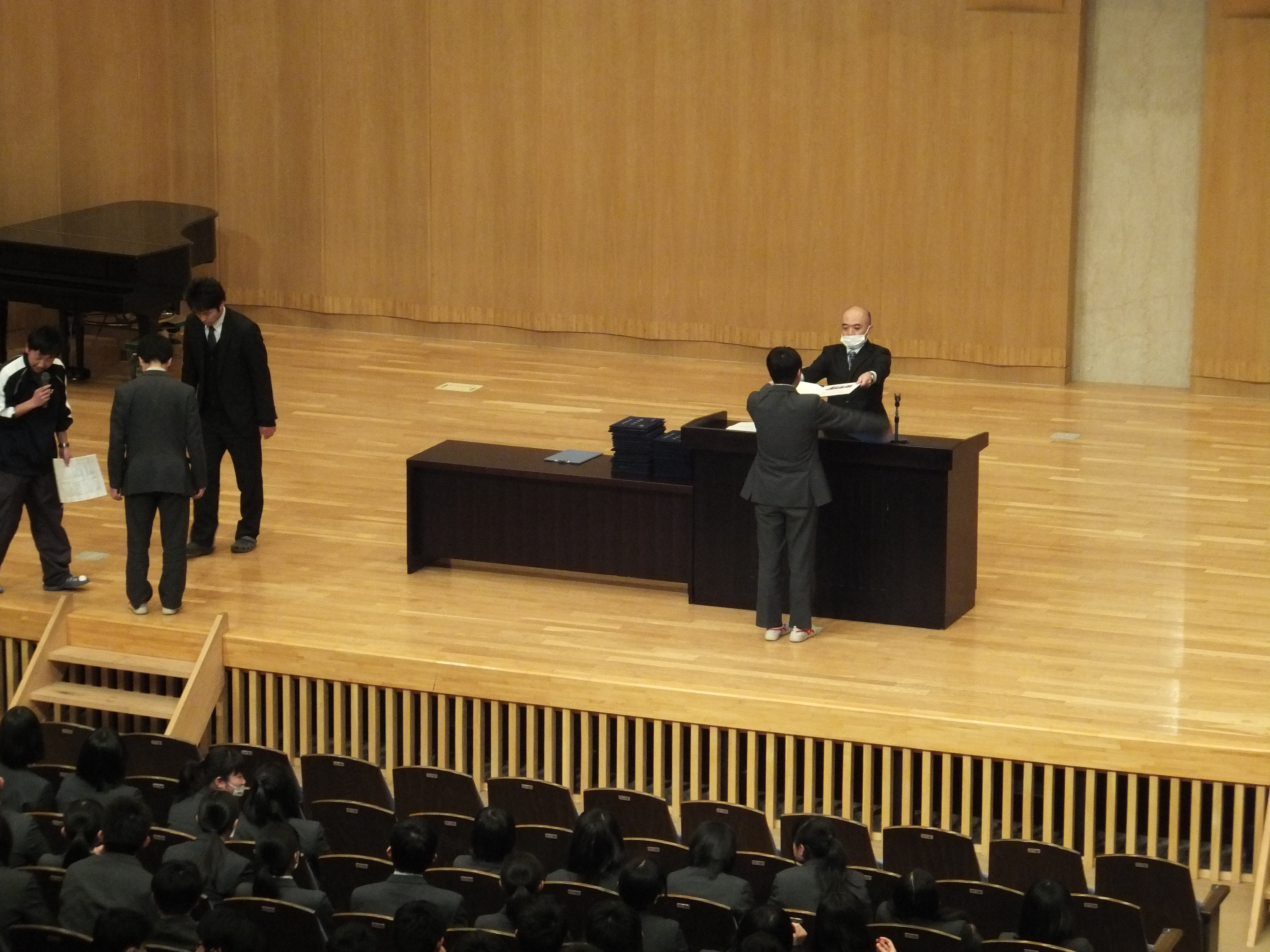県立入試が終わり、本日3年生は卒業式の練習を行いました。返事の練習、賞状の受け取り方や合唱など、限られた時間の中で集中して取り組みました。3月10日の本番で素晴らしい式になるように、さらに完成度を高めてもらいたいと思います。