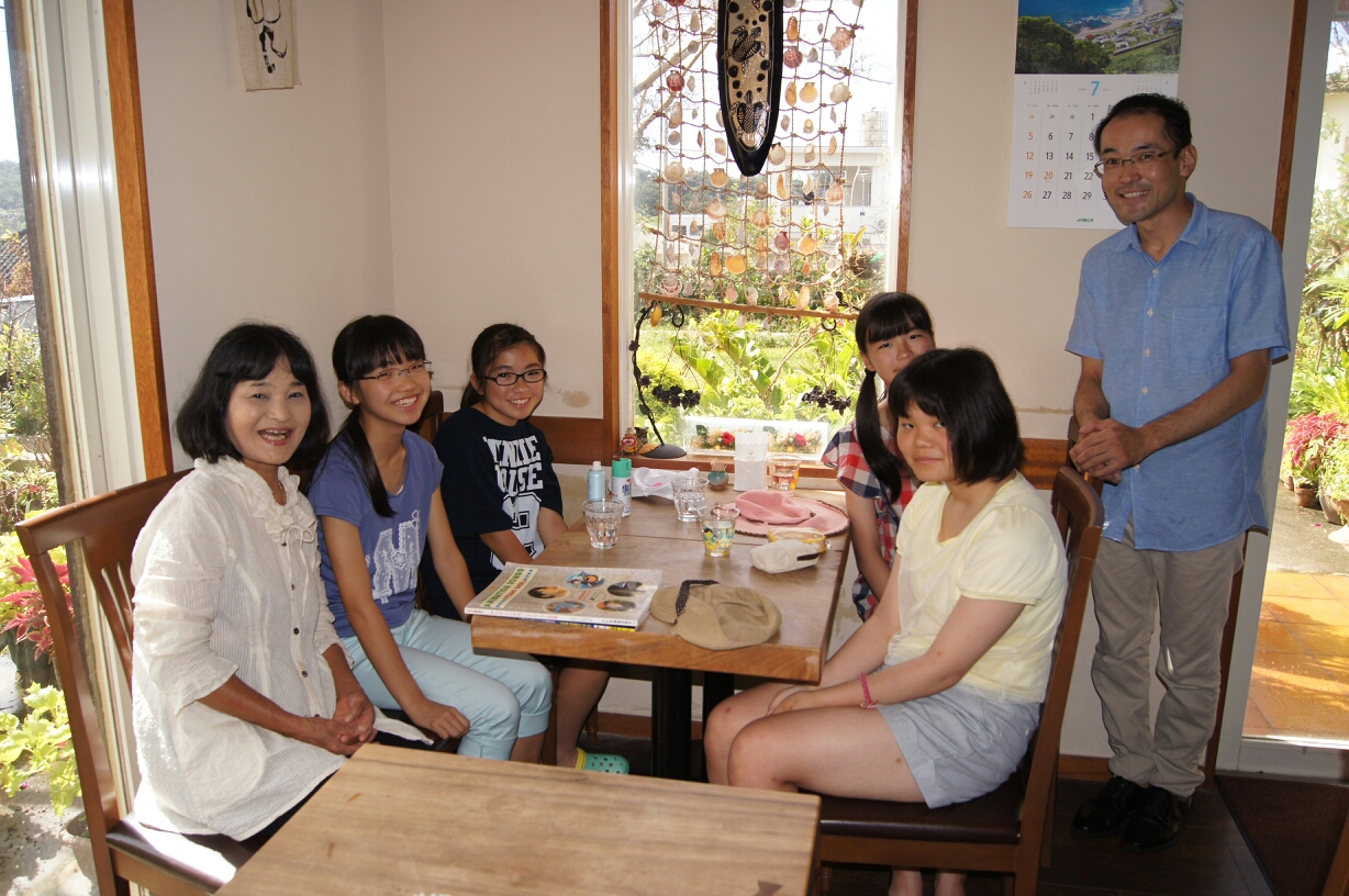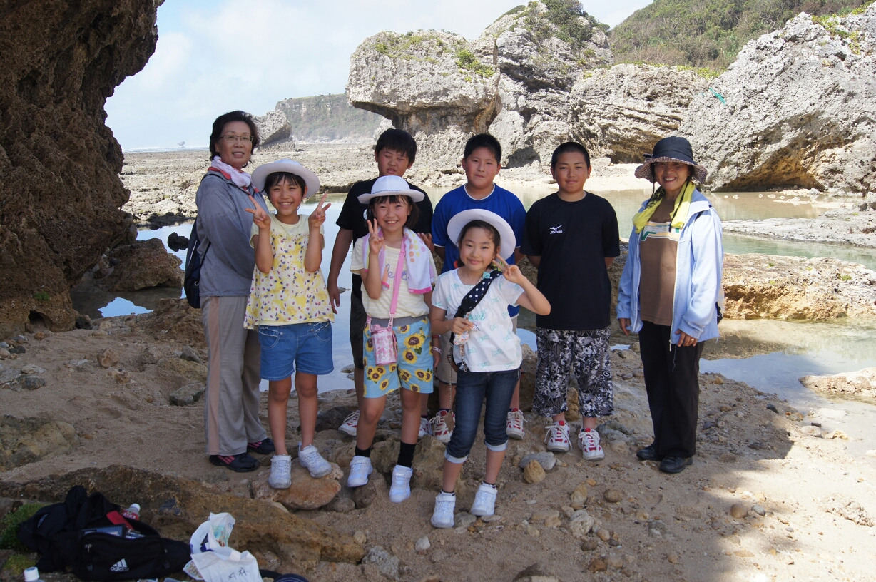 昨日に引続き民泊を受け入れて下さった家族の方と半日を過ごしました。海に行って貝殻を拾ってきたり、ヤドカリを捕まえて観察したり、サーターアンダギーを作ったりと、いろいろなことを体験してきたみたいです。一人ひとり、いい思い出になったのではないかと思います。
