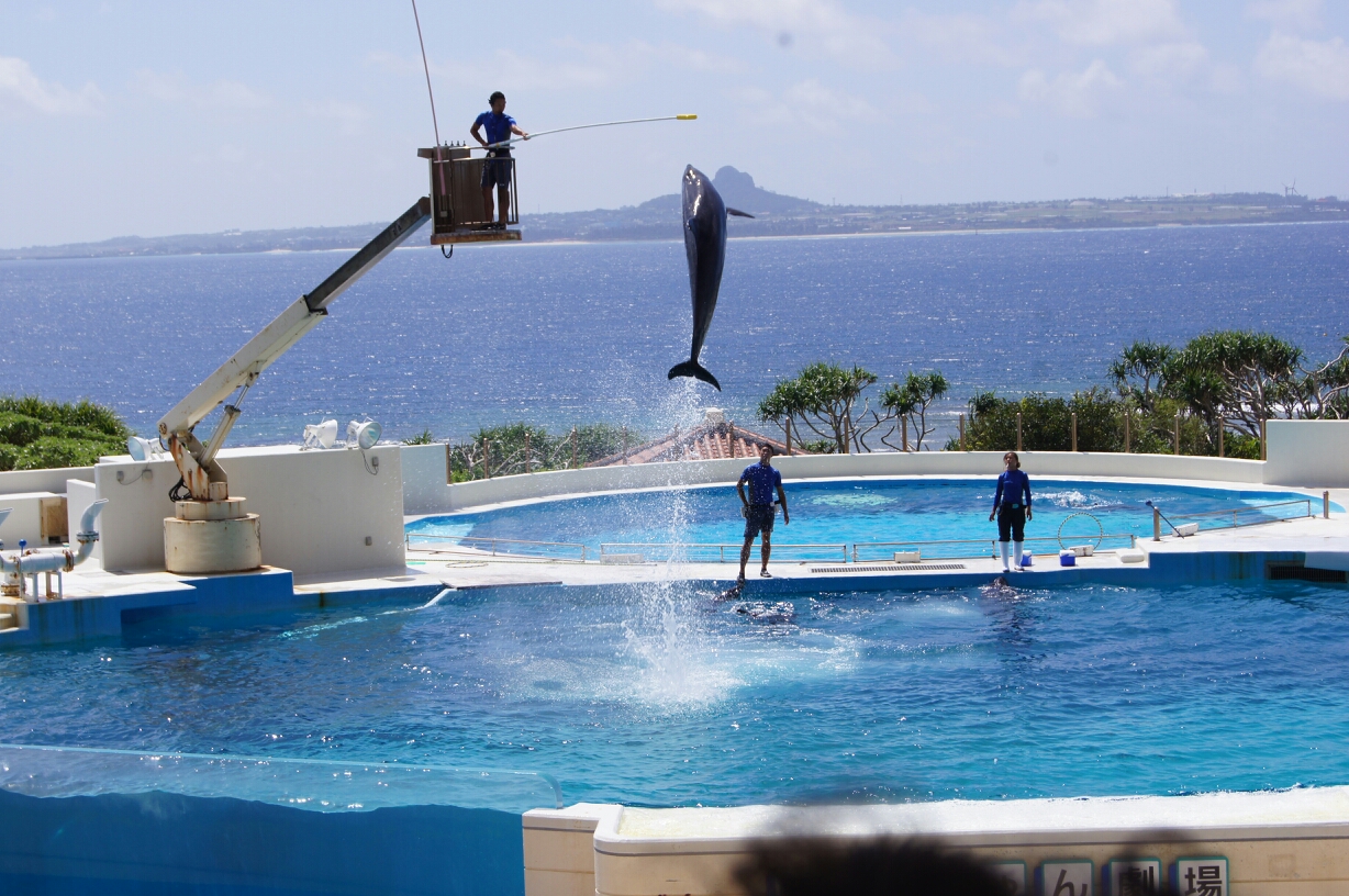 3ヵ所目は、美ら海水族館に行きました。巨大水槽でジンベエザメを見たり、深海魚を見たりしました。水族館を見学した後は、イルカショーを見ました。高くジャンプしたり、水面を立って移動したりと、イルカの特殊能力に魅了されました。