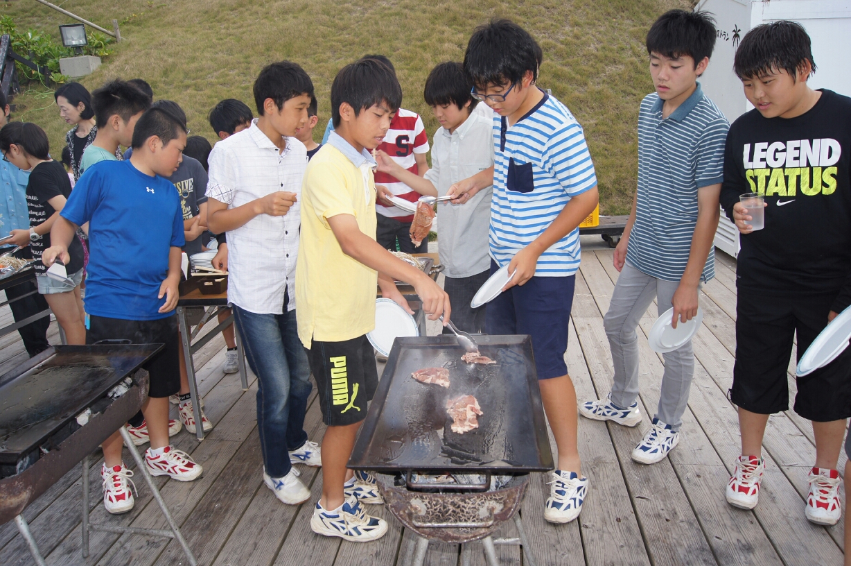 そして、国内研修旅行最後の夕飯はバーベキューでした。好きなものを焼いたり、スイカを食べたりして、お腹いっぱいになったみたいです。