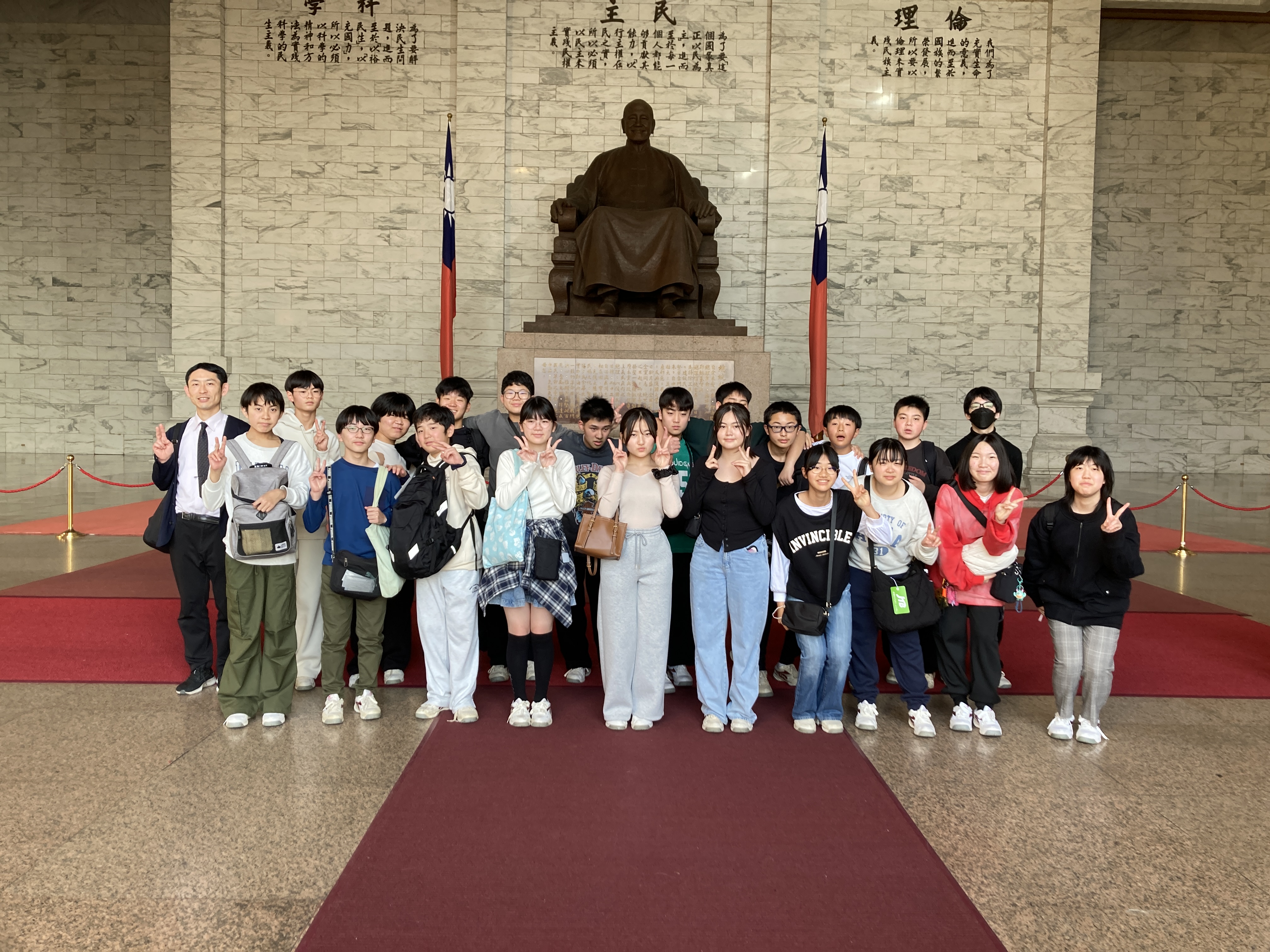午後も午前に続き「228国家博物館」等、歴史を学べる施設を複数箇所回りました。写真は蒋介石の石像前での集合写真です。