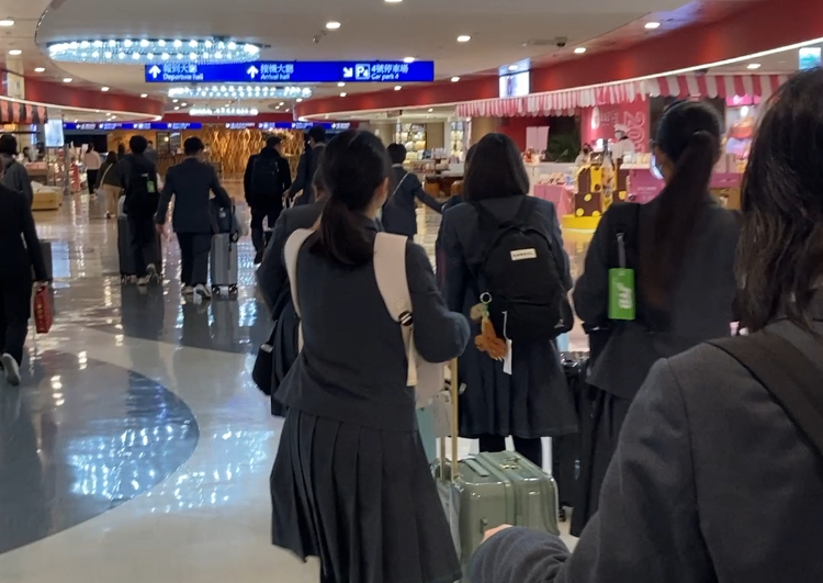 日本へのフライトに向かう生徒たちの後ろ姿です。沢山学べて、多くの思い出を作ることができた4日間でした。また明日から通常の学校生活を頑張っていきましょう。