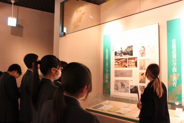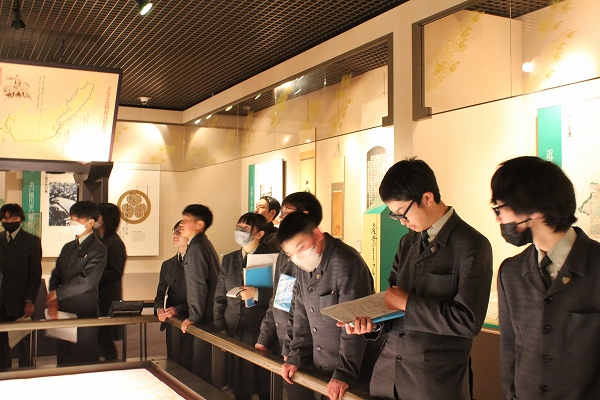 企画展では、織田信長や羽柴秀吉の手書きの書状など、歴史の授業にも登場した人物にゆかりの展示物も多く歴史好きな生徒は目を輝かせて展示物を見学しました。